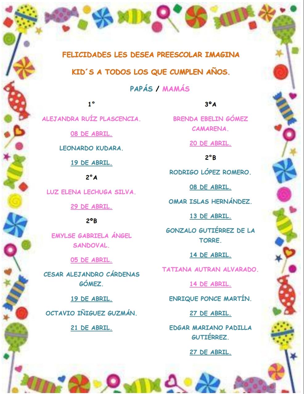 ¡APRIL BIRTHDAYS / CUMPLEAÑOS DEL MES DE ABRIL 2026! por Imagina | Abr 1, 2026 | Avisos | 0 comentarios