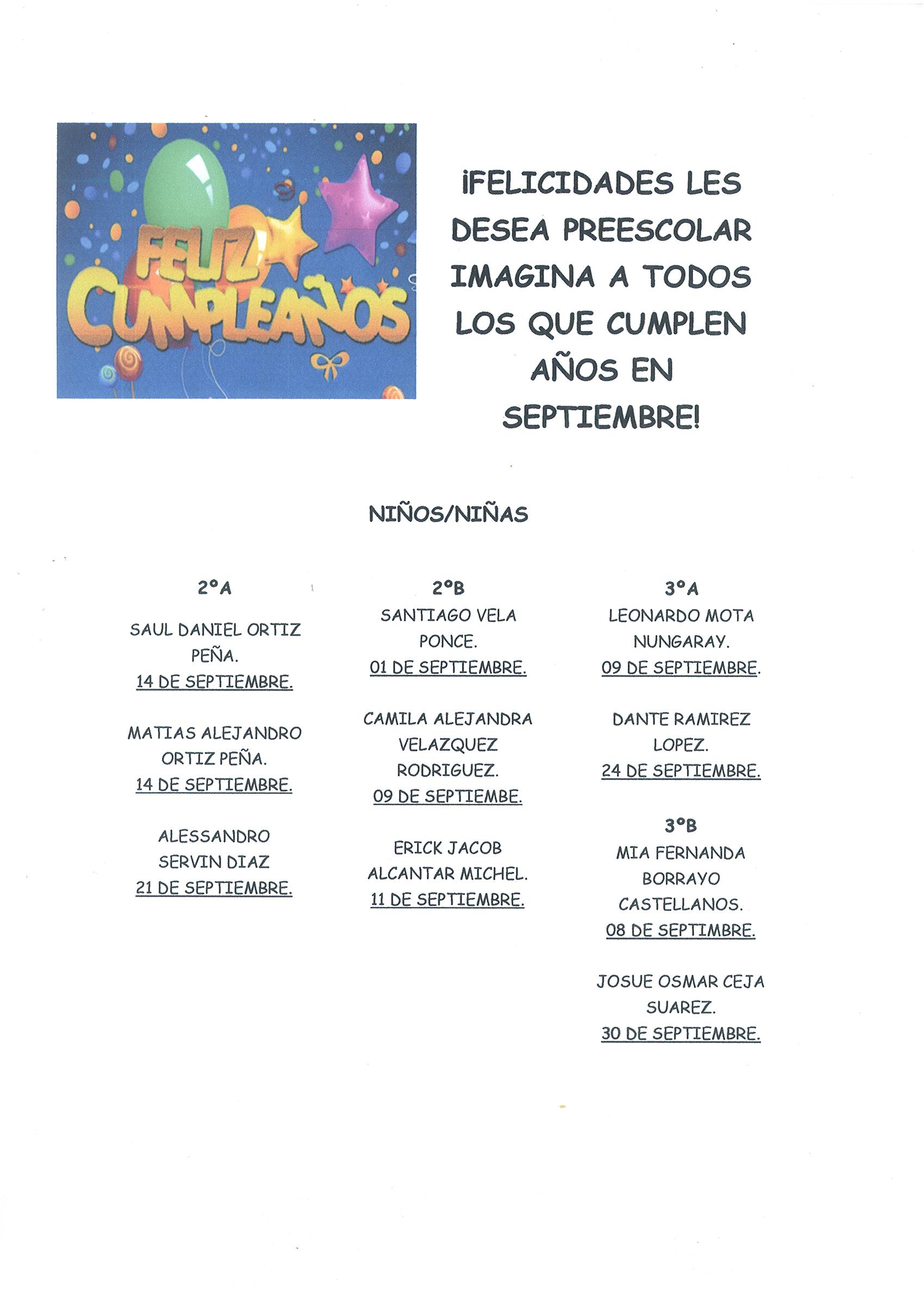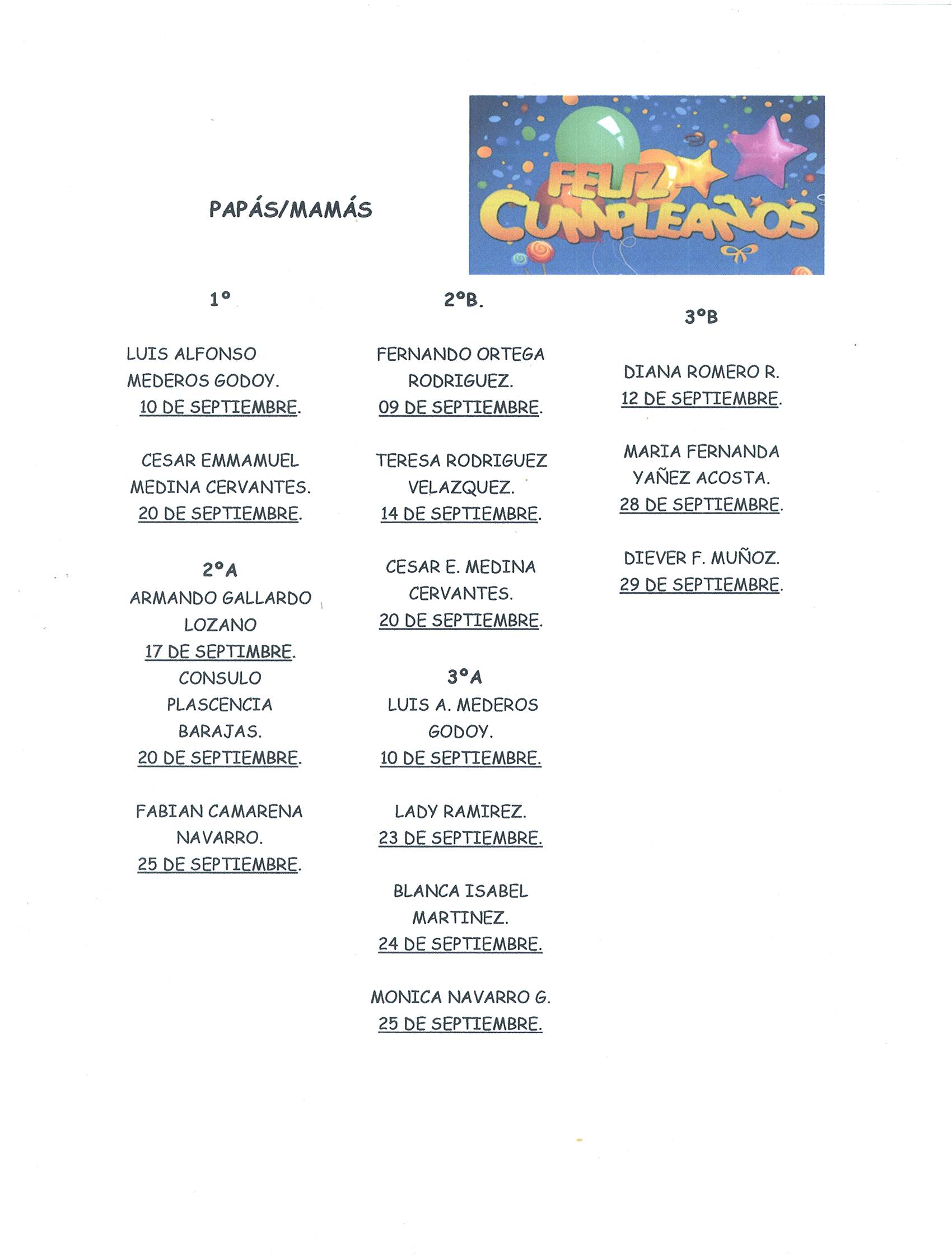 CUMPLEAÑOS DEL MES DE SEPTIEMBRE 2015.